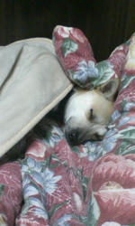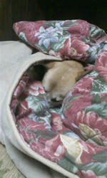 おかんとアタシが相棒(アタシらが観る、数少ない番組/笑)を観てる間、おかんの足元で丸まってたろろ。よっぽど眠かったのか、おかんに掻巻被せられても、埋もれたまま寝てましたv(愛)