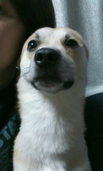 そんな激しい降りに加え、雷のでかい音が。うちのびびりったさんが当然のごとく怯えておりました。テーブルの下に潜ったり、おかんに抱っこされたり、アタシにぴたーっとくっついて来たり。