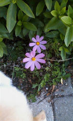 4月がなかなか暖かくなりきらなかった所為なのか、今月に入って大分暑くなってきたけど、朝晩は結構ひんやりする日が多い所為なのか、散歩コースに秋桜が咲いとります。ちなみに左下に映り込んでるのは、ろろの尻です。(笑)