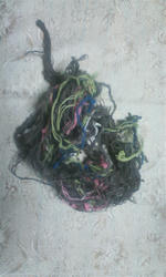 それを更に破壊し、4色の紐が3本捩ってあったんですが、それも分解。そしてその分解した紐を糸くずに。