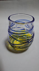 作れるのはグラス・一輪挿し・ぐい飲みのどれかなんですが、形はいくつかあって自由に選べるし、着ける色や模様も見本から自分で好きに選んで組み合わせて。なかなか楽しかったけど、難しかったです。そして息が苦しかったです。(苦笑)